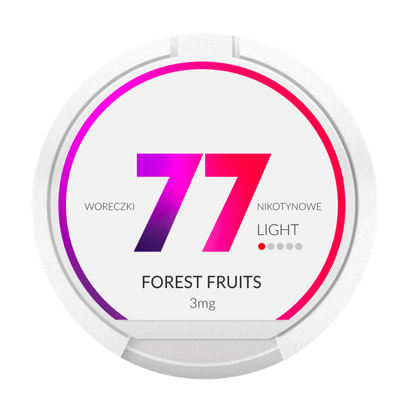 Buy 77 nicotine pouch - Forest Fruits 3mg (1,5mg) online today at Killa Snus. We offer fast shipping and the best prices for all your nicotine pouch needs.